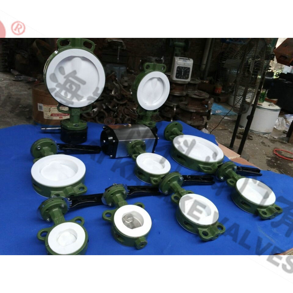 D671F46气动对夹式衬氟蝶阀广泛用于防腐管道系统上。主要用以实现阀门的开启、关闭与调节。全衬聚四氟乙烯(F4)、聚三氟氯乙烯(F3)和聚全氟乙丙烯(F46)氟塑料衬里阀,具有耐腐蚀、无泄漏、寿命长等优点。 适用于浓硫酸、盐酸、硝酸、氢氟酸、王水、各种有机酸、强酸、氧化性介质或高温烯硫酸、高温浓醋酸、酸碱交替及多种有机溶剂和其它强腐蚀性介质。