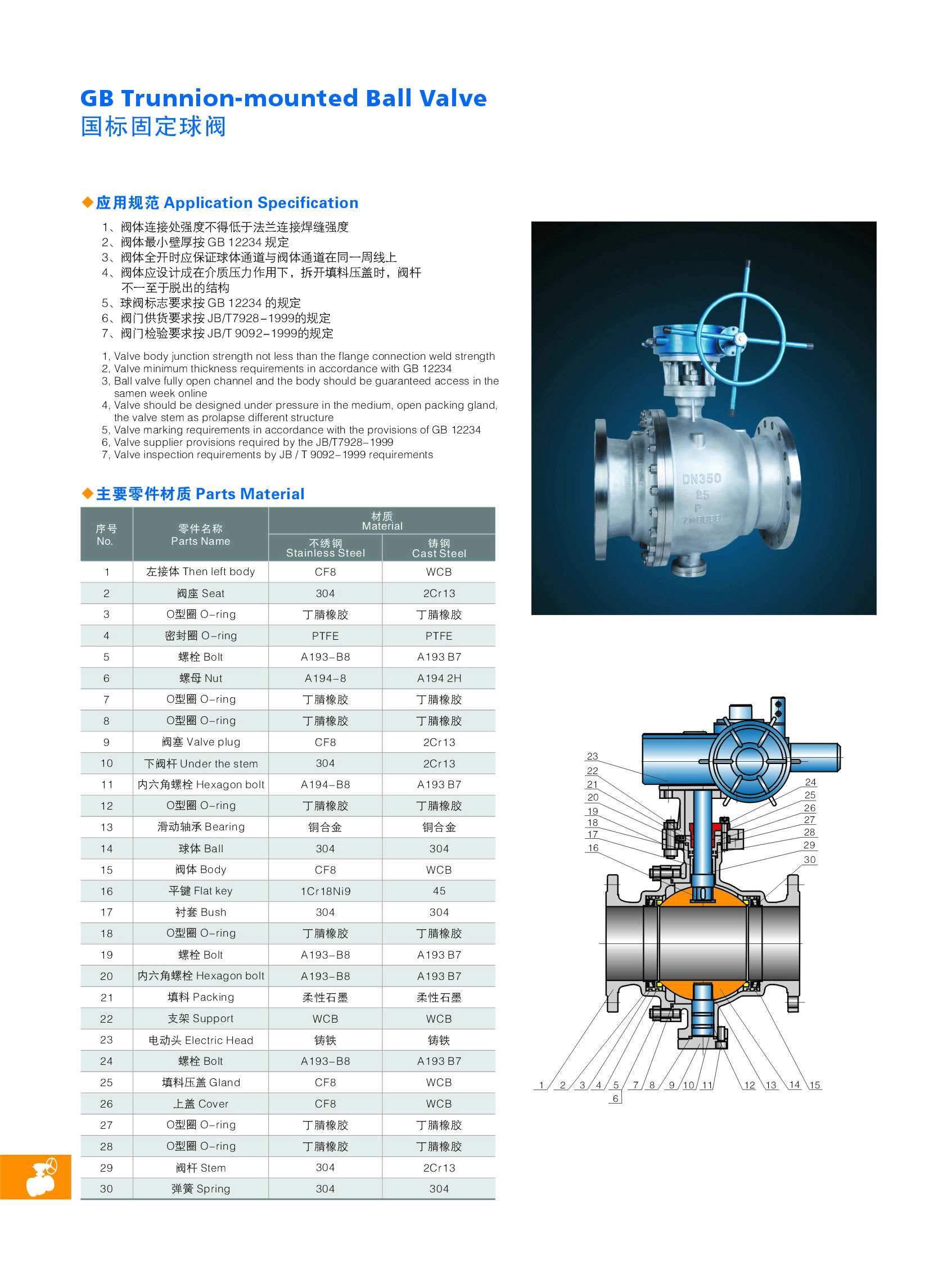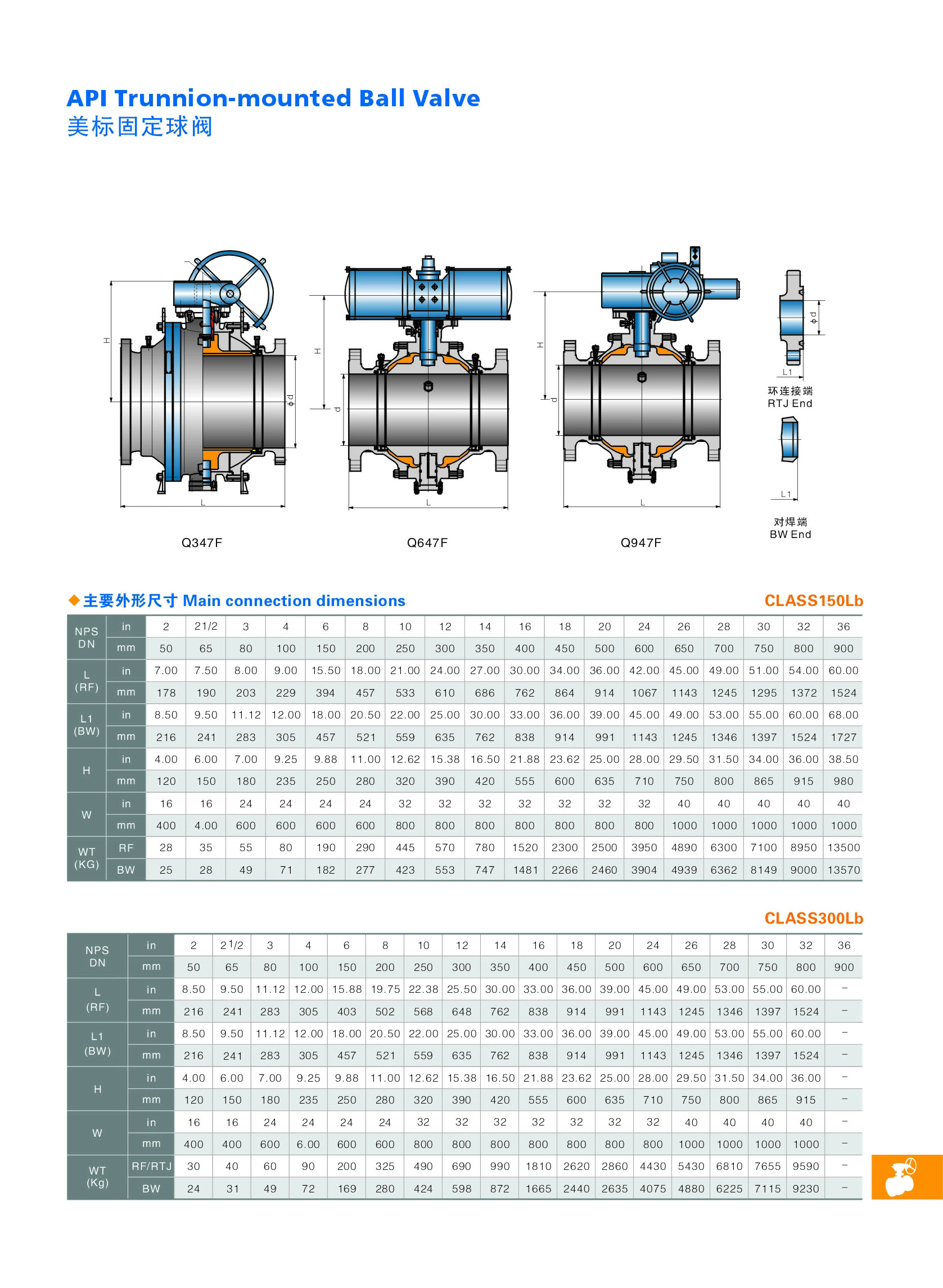 Q347Y-16/25C大口径金属硬密封固定式球阀是新一代高性能球阀,适用于长输管线和一般工业管线,其强度、安全性、耐恶劣环境性等在设计时进行了特殊考虑,适用于各种腐蚀性和非腐蚀性介质。它与浮动球阀相比,工作时,阀前流体压力在球体上产生的作用力全部传递给轴承,不会使球体向阀座移动,因而阀座变形小,密封性能稳定、使用寿命长,适用于高压、大口径场合。先进的弹簧预阀座组件,具有自紧特性,实现上游密封。每阀有两个阀座,每个方向都能密封因而安装没有流向限制,是双向。本阀有二块式和三块式两种阀体结构,中法兰用螺栓连接,密封采用增强聚四氟乙烯镶入不锈钢圈内,钢圈后部设有弹簧保证阀座紧贴球体,保持密封。上下阀杆均设有PTFE轴承,减少磨擦,操作省力,小轴底部没有调整片,保证球与密封圈的接处位置。采用全通径的结构使阀门流量孔么与管线内径一致,以便管线清扫。