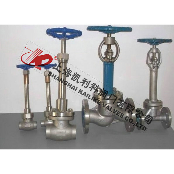 DJ11Y螺纹低温截止阀有二种阀盖设计形式。第一种是螺栓式阀盖,按这种设计形式设计的阀门,其阀体与阀盖用螺栓螺母连接,缠绕式垫片 (31 6夹柔性石墨制造)密封。客户有特殊要求时也可采用金属环连接。第二种设计形式是焊接式阀盖,按这种设计形式的阀门,其阀体与阀盖用螺纹连接,全焊密封。客户有特殊要求时也可采用全焊逶连接。闸闸、截止阀、球阀都可设计成低温阀。为了能在-196℃(320oF)的低温下使用,一般将阀门设计成加长式阀盖。