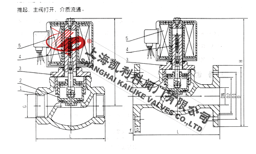 ZQDF蒸汽电磁阀为分步动作直接先导式电磁阀,可根据断电时所处开、关状态的不同,可分为常闭式电磁阀和常开式电磁阀。常闭电磁阀,线圈通电后,衔铁在电磁力作用下先带动副阀阀塞提起,主阀阀杯上的流体经副阀流走,减少了作用在主阀阀杯上的压力,当主阀阀杯上的压力减少到一定值时,衔铁带动主阀阀杯,并利用压差而使主阀阀杯开启,介质流通。线圈断电后,电磁力消失,衔铁因自重下落复位。同时依靠介质压力,主副阀得以紧密关闭。常开电磁阀,线圈通电后由于吸力作用,动铁芯下移,把副阀阀塞压下,副阀关闭,主阀阀杯内压力上升,当压力升到一定值时,主阀阀杯的上下压差一样,由于电磁力作用,动铁芯失去主阀阀杯下,压紧主阀阀座,阀门关闭。线圈断电时,电磁吸力为零,副阀阀塞和支铁芯由于弹簧作用向上提起,副阀打开,主阀阀杯上的流体经副阀流走,减少了作用在主阀阀杯上的压力,当主阀阀杯上的压力减少到一定值时,利用压差把主阀阀杯推起,主阀打开,介质流通。