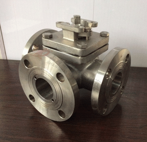 (Q44F)L型三通球阀只能连接相互正交的两条管道,不能同时保持第三条管道的相互连通,只起分配作用。T型能使三条正交的管道相互联通和切断第三条通道,起分流、合流作用。