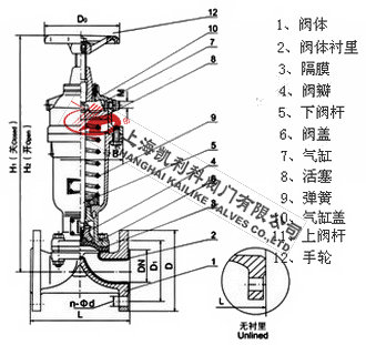 8、视胶隔膜阀的阀体内腔表面视复有厅供选择的多种橡胶。因此具有优越的耐腐蚀的特点。