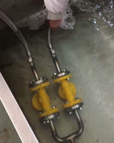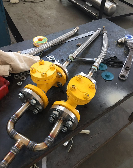 我们可以从图中看出这个氨用止回阀漏气漏得很严重,心塞,自己的产品怎么这么不管用,感觉找一下解决方案,图中发现了氨用止回阀是朝下的,不对劲啊,问题马上就看出来了,立即给客户打电话过去,氨用止回阀中部法兰应该朝上。