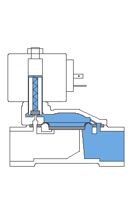 1)常闭型,通电时电磁线圈产生足够的电磁力把运动部件(由磁芯、阀杆、上下部的膜片/密封件构成)从阀座上提起,阀门开启;断电时弹簧力把运动部件压在阀座上,阀门关闭。